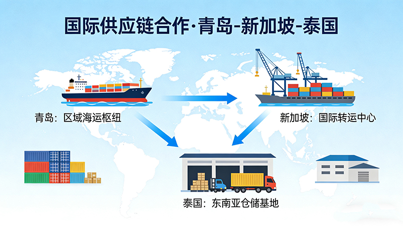 本次布局覆盖集装箱海运、本地仓储、内陆运输、订舱代理、清关与末端配送等核心环节,依托青岛港区位优势与东南亚直航资源,打通“青岛—泰国—新加坡”陆海联运通道,实现订舱、仓储、中转、派送一站式闭环服务。依托成熟的海外合作网络与本地操作团队,公司可有效保障舱位稳定、时效可控、成本优化,全面满足进出口企业在东南亚市场的贸易与供应链需求。
